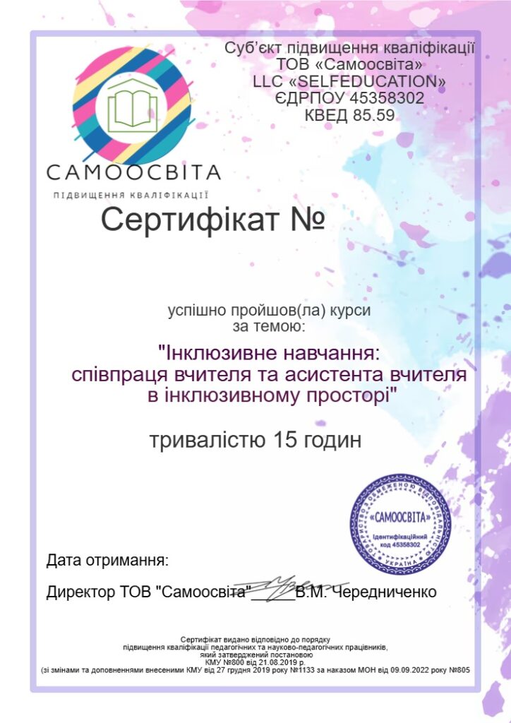 "Інклюзивне навчання: співпраця вчителя та асистента вчителя в інклюзивному просторі"